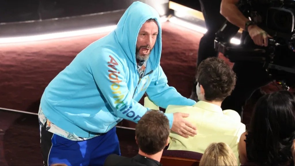 The event also tied back to an unexpected piece of awards-season comedy earlier in the year. During the Golden Globe Awards in January, host Nikki Glaser joked that Timothée Chalamet’s name “sounds like something Adam Sandler would say.” The joke set up the perfect moment: Sandler delivered a spot-on, exaggerated Sandler-style “Chalamet!” in the exact tone of voice fans associate with his comedic characters. The bit went viral almost immediately, celebrated for the way it playfully bridged two completely different onscreen personas. The joke resurfaced months later at the Academy Awards, where host Conan O’Brien engaged Sandler in a conversation about being underdressed. When Sandler spotted Chalamet in the audience, he couldn’t resist reviving the bit. “Chalamet!” he shouted across the venue, drawing laughs from viewers at home and attendees alike.